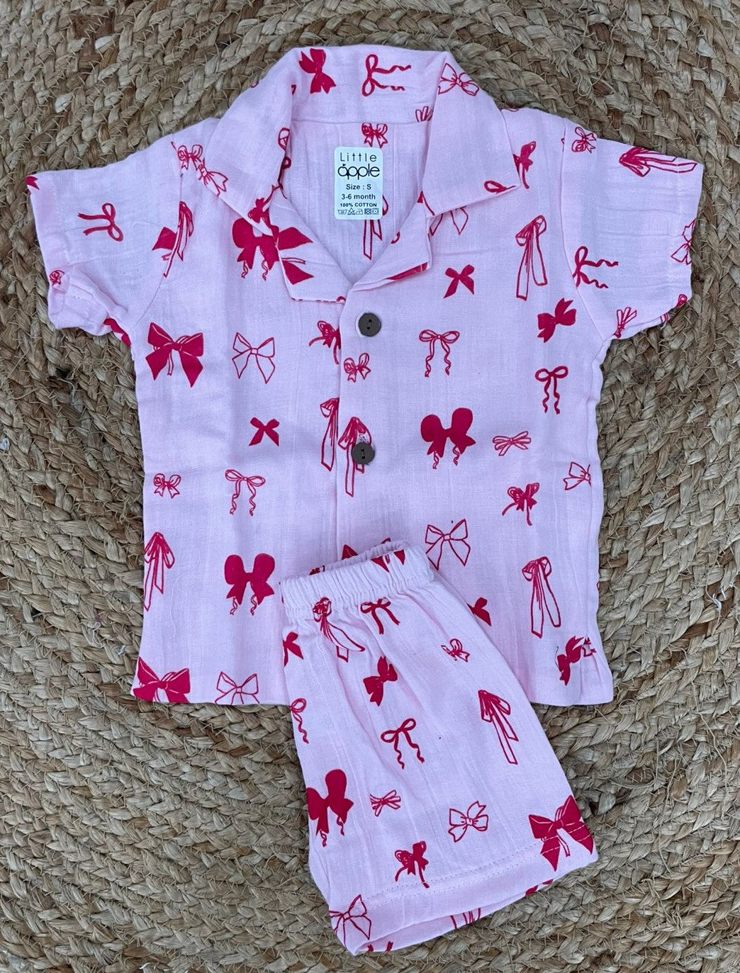 The set appears to be comfortable, breathable, and made for an infant or toddler. The style is playful and cute, likely intended for casual wear or sleepwear.