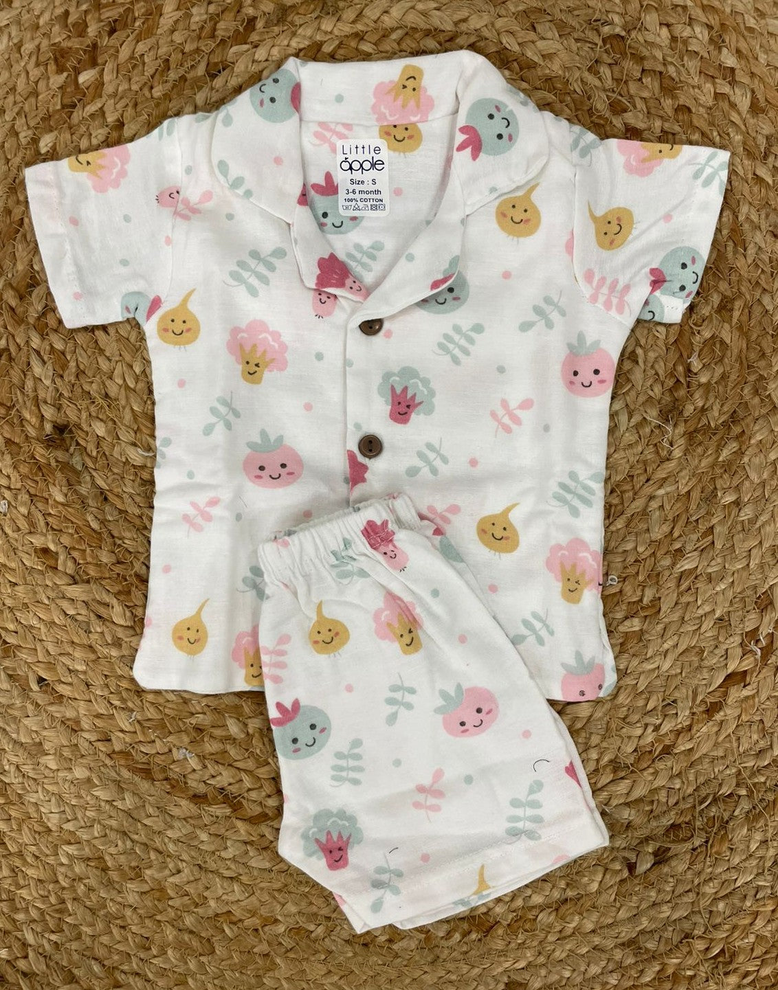 The set appears to be comfortable, breathable, and made for an infant or toddler. The style is playful and cute, likely intended for casual wear or sleepwear.
