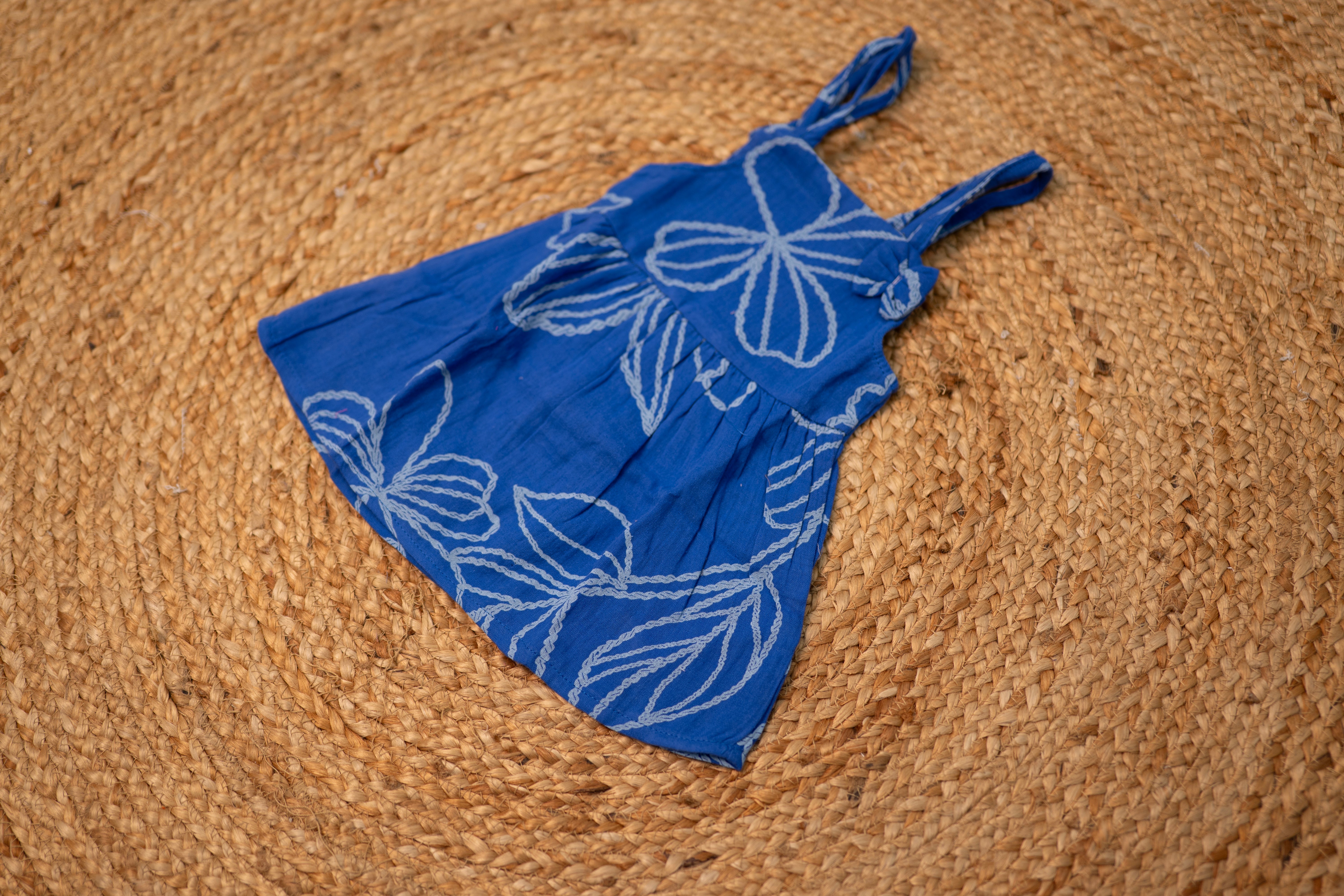 Introduce your little one to effortless style with this charming embroidered floral sundress. Crafted from lightweight, breathable fabric, this dress keeps kids comfortable while offering a beautifully detailed look. The deep charcoal base is accented by elegant white embroidered blossoms, giving it a handcrafted, natural aesthetic. Adjustable tie-shoulder straps ensure a perfect fit as your child grows, while the gently flared skirt allows easy movement for play, outings, or warm-weather adventures.