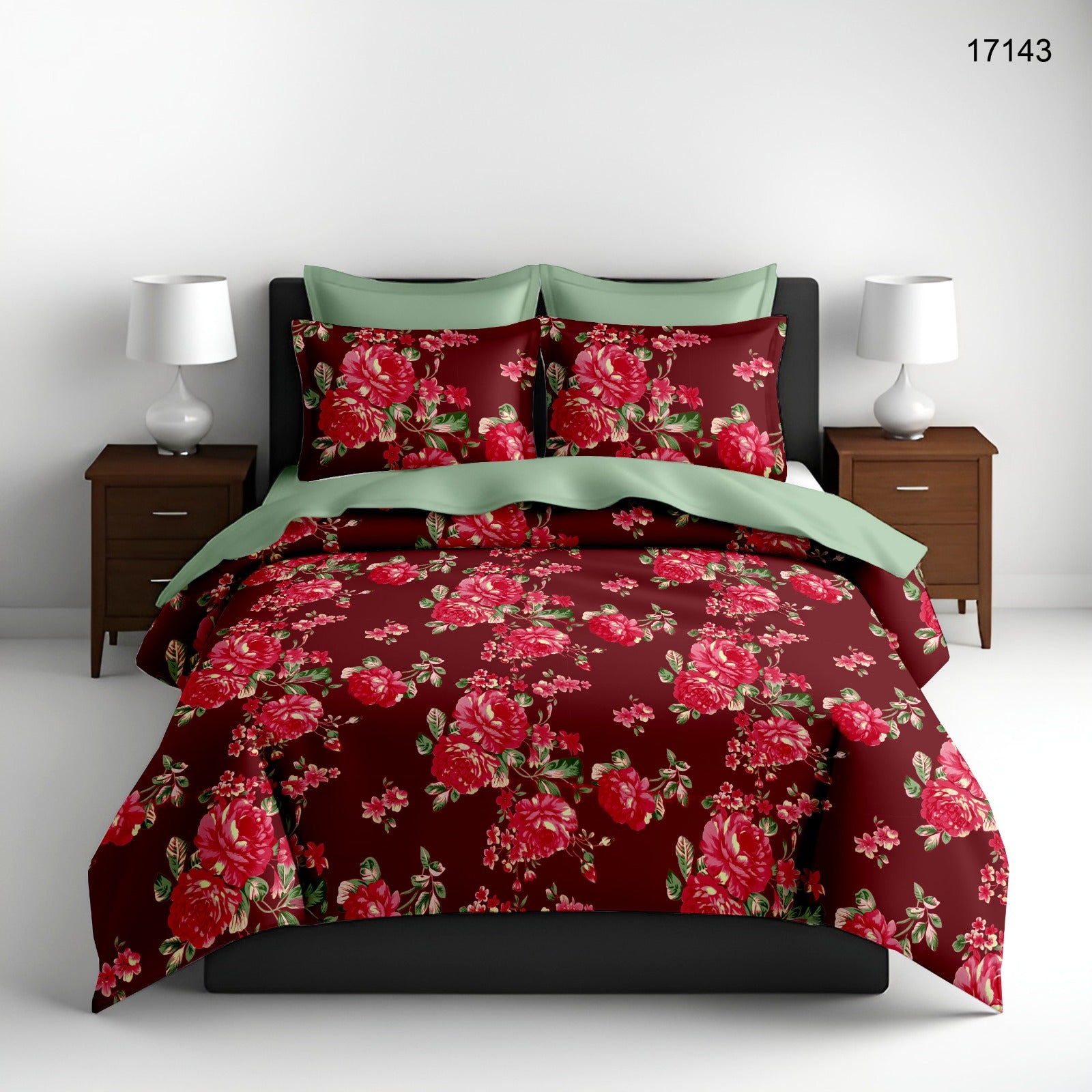 King size Full Bedspread- Red Flowers