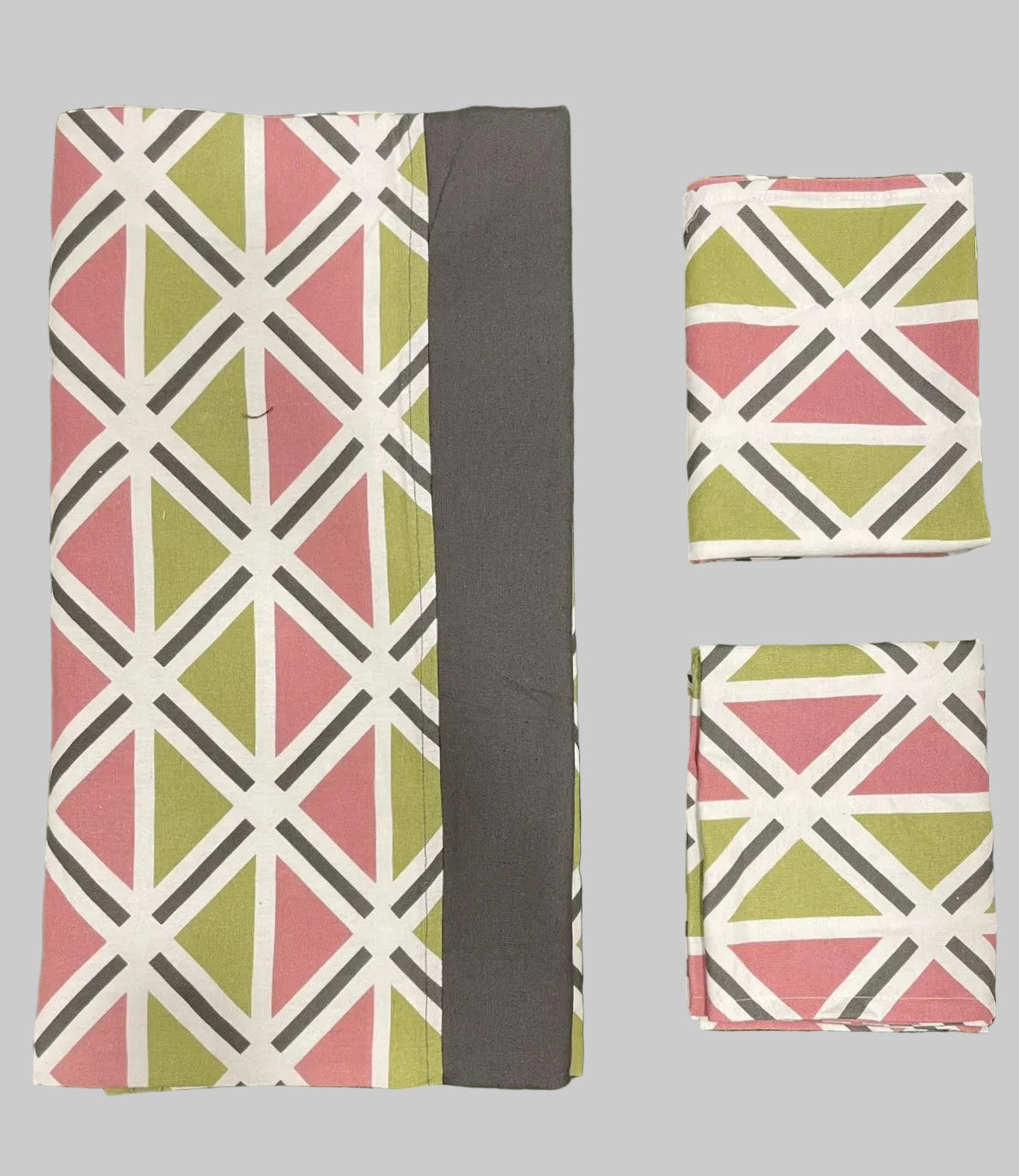Queen size border bedspread - green and pink base gray border